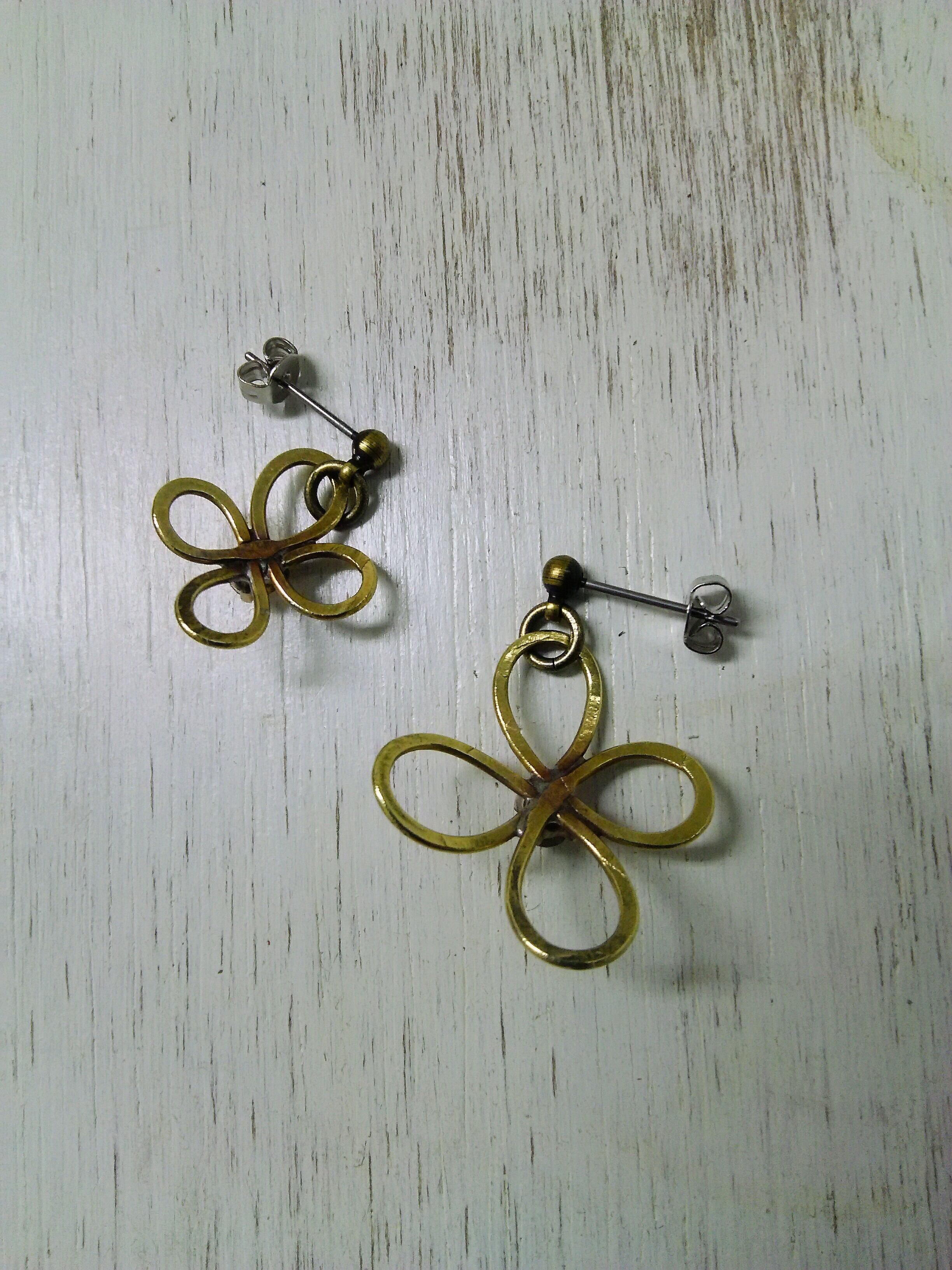 お花モチーフですが、可愛くなりすぎず真鍮の落ち着いた輝きが大人っぽさを醸し出すピアスです。