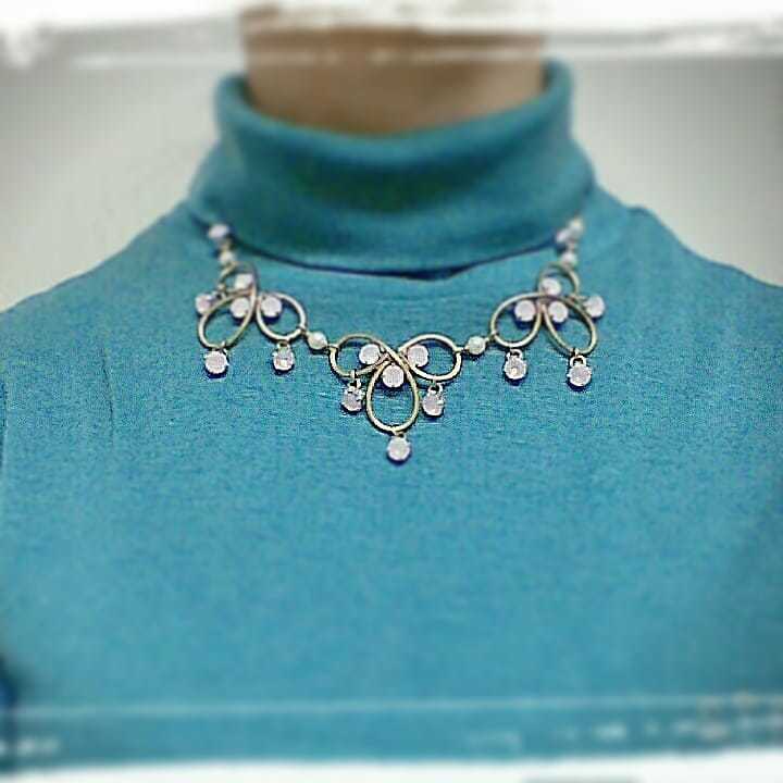 スワロフスキーのラインストーンを真鍮線で作ったモチーフにはんだ付けしたネックレスです。