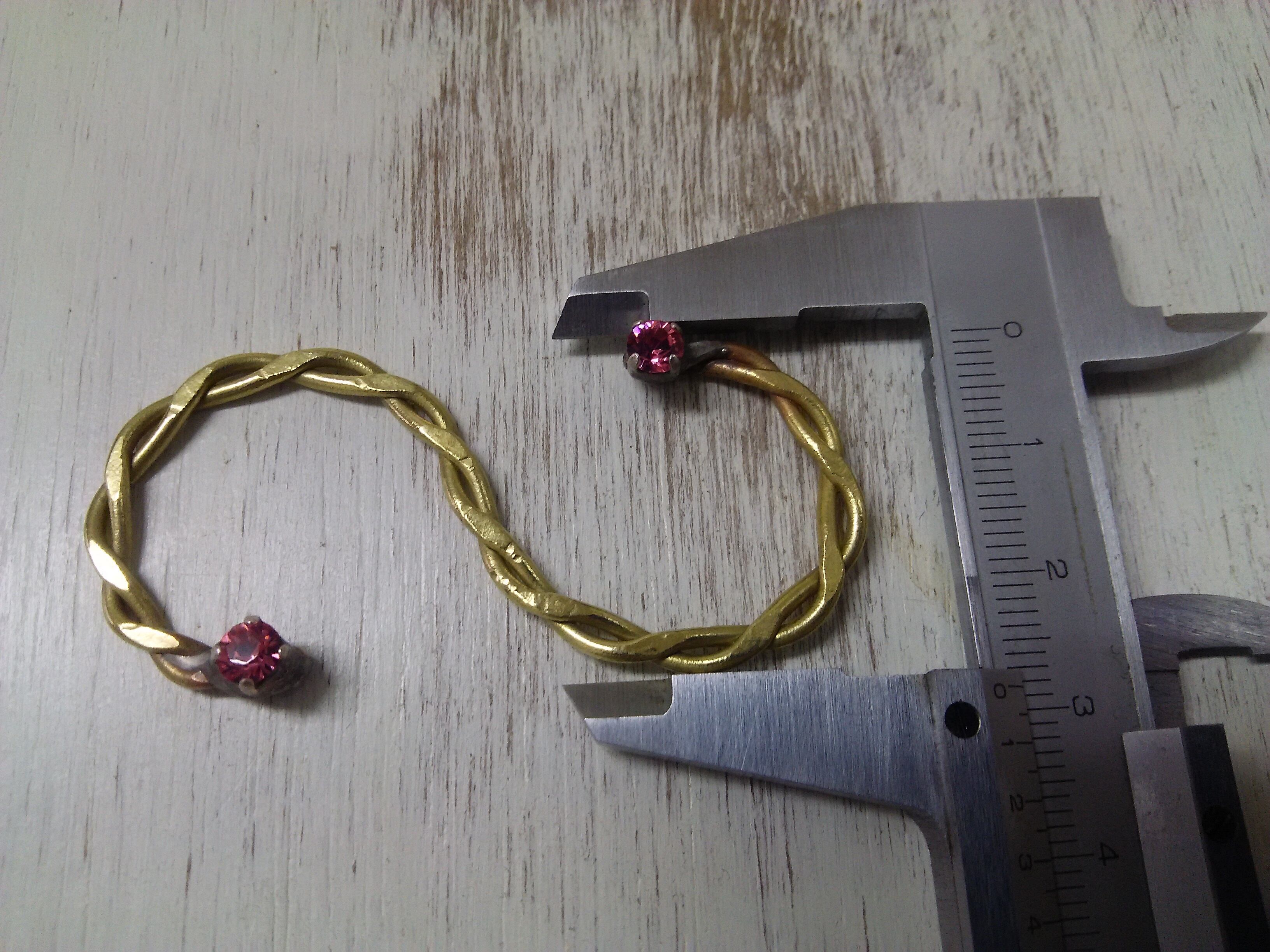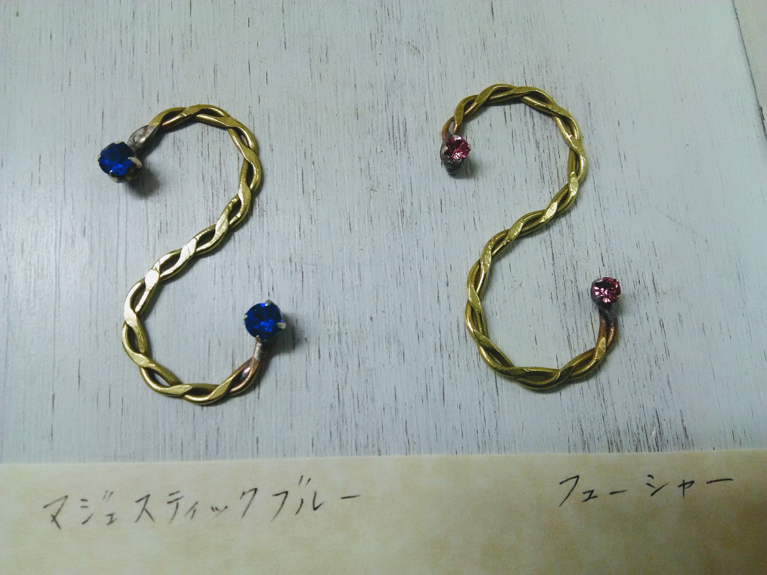 ラインストーンの回りは、ハンダ付け後アンティーク加工を施しております。真鍮と少し違う色になっております。