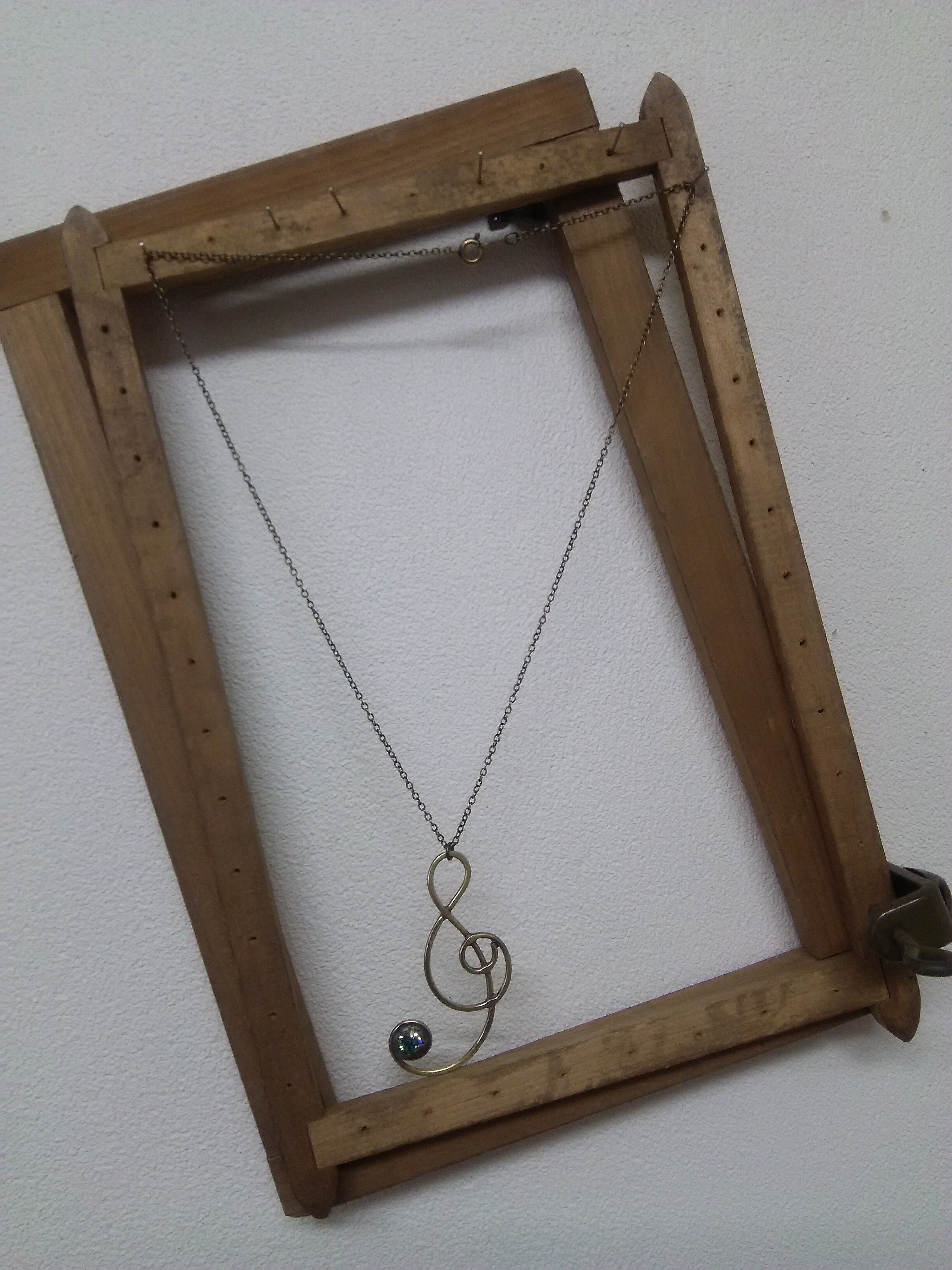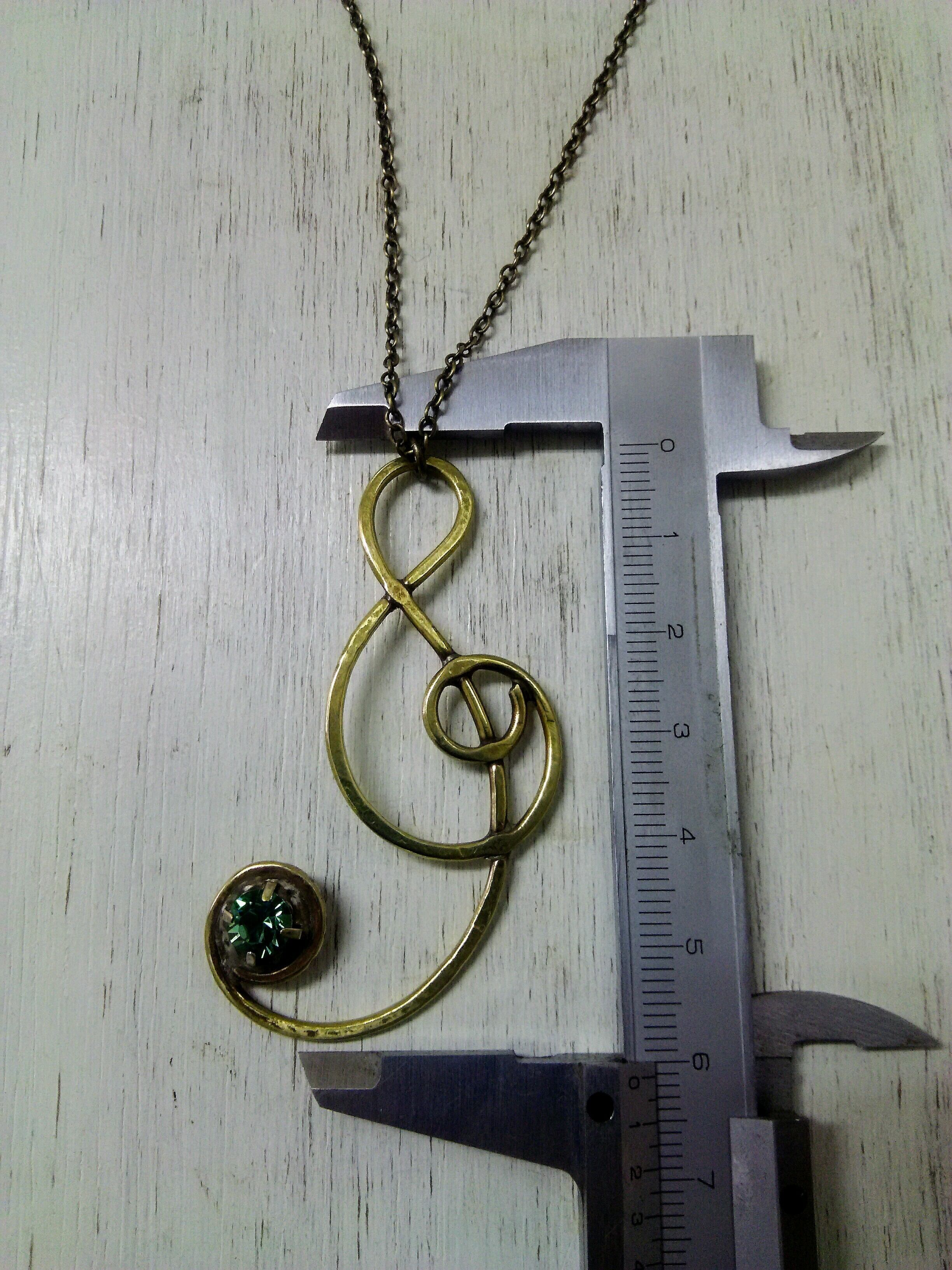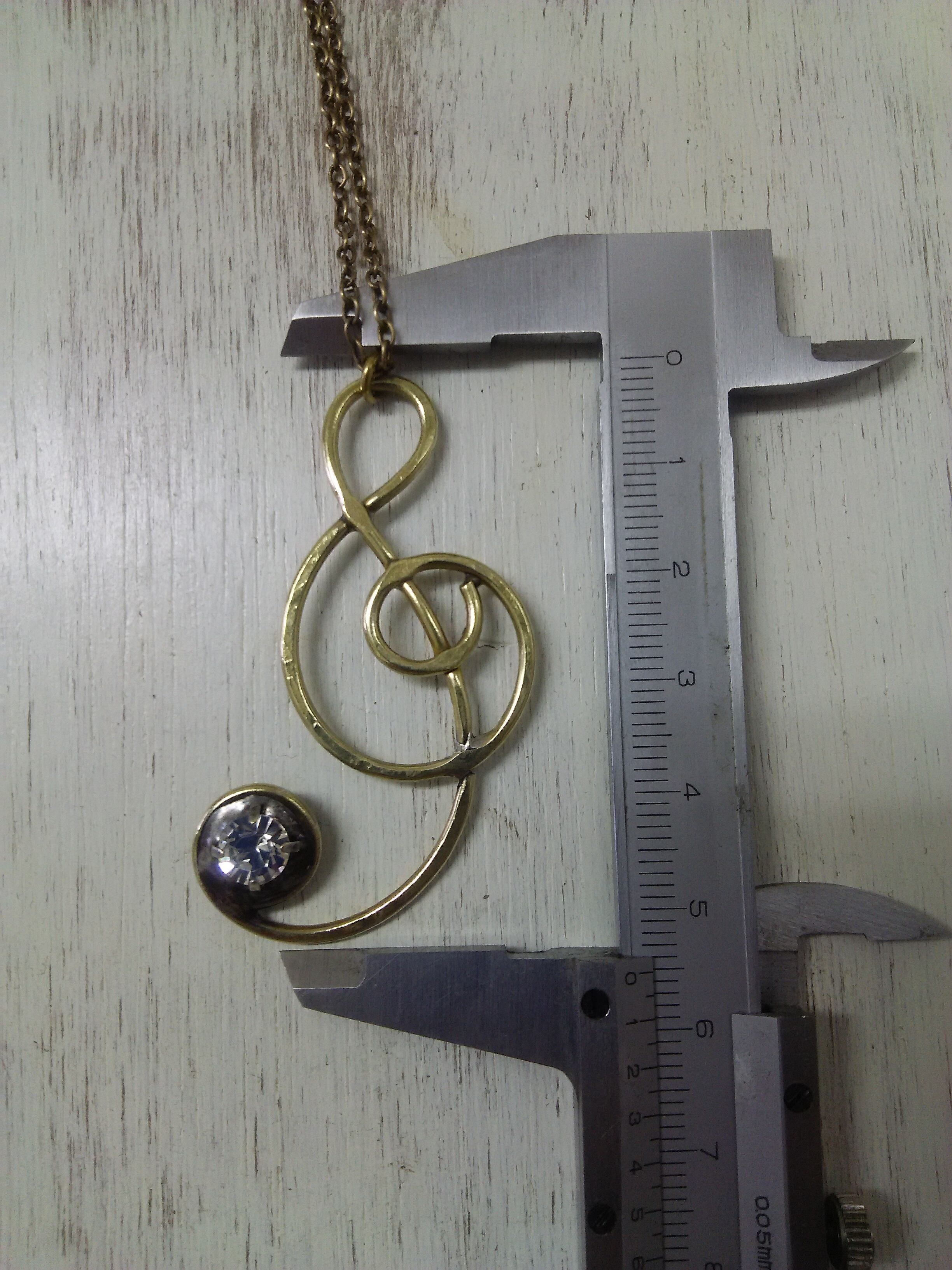 真鍮線でト音記号を作り、スワロフスキーのラインストーン(6ミリ)をはんだ付けしました。