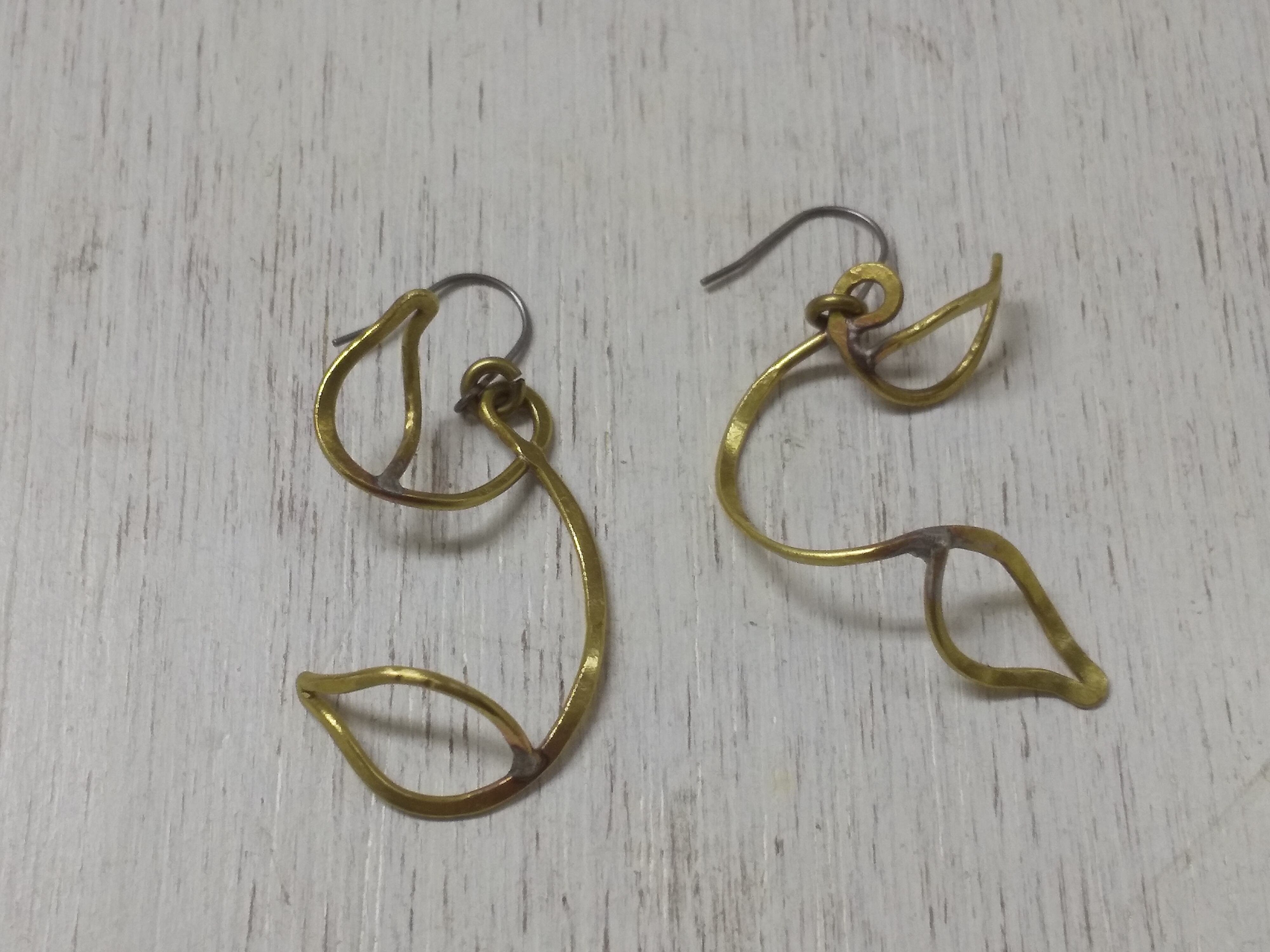 GrassHarpのアクセサリーは、一つ一つ手作業で制作しております。特にこの作品は真鍮線を用いたフリーラインなので全く同じ物はなく一点物となります。