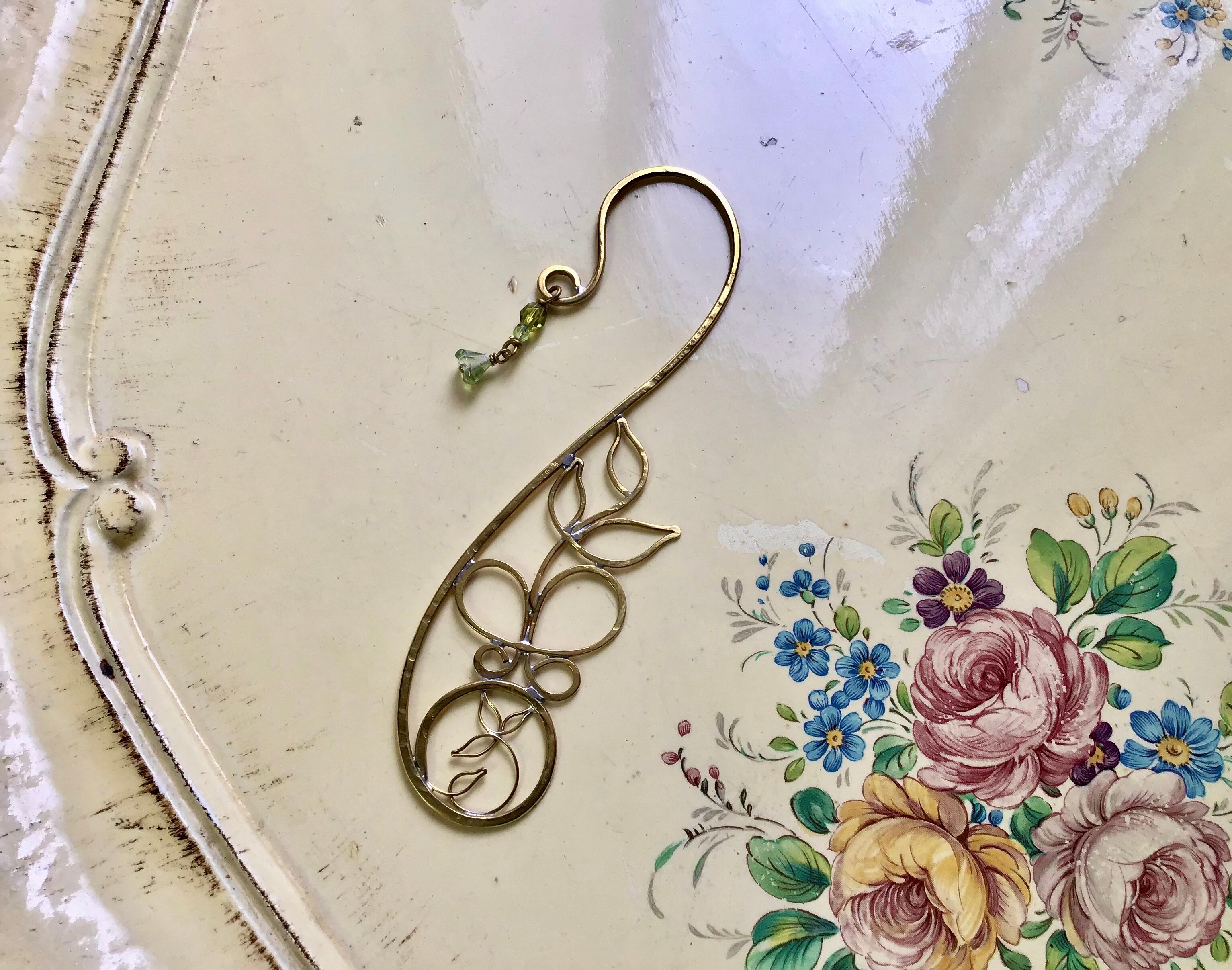 本にはさむと飾りのビーズが見えるお洒落なアンティーク調のしおりです。