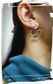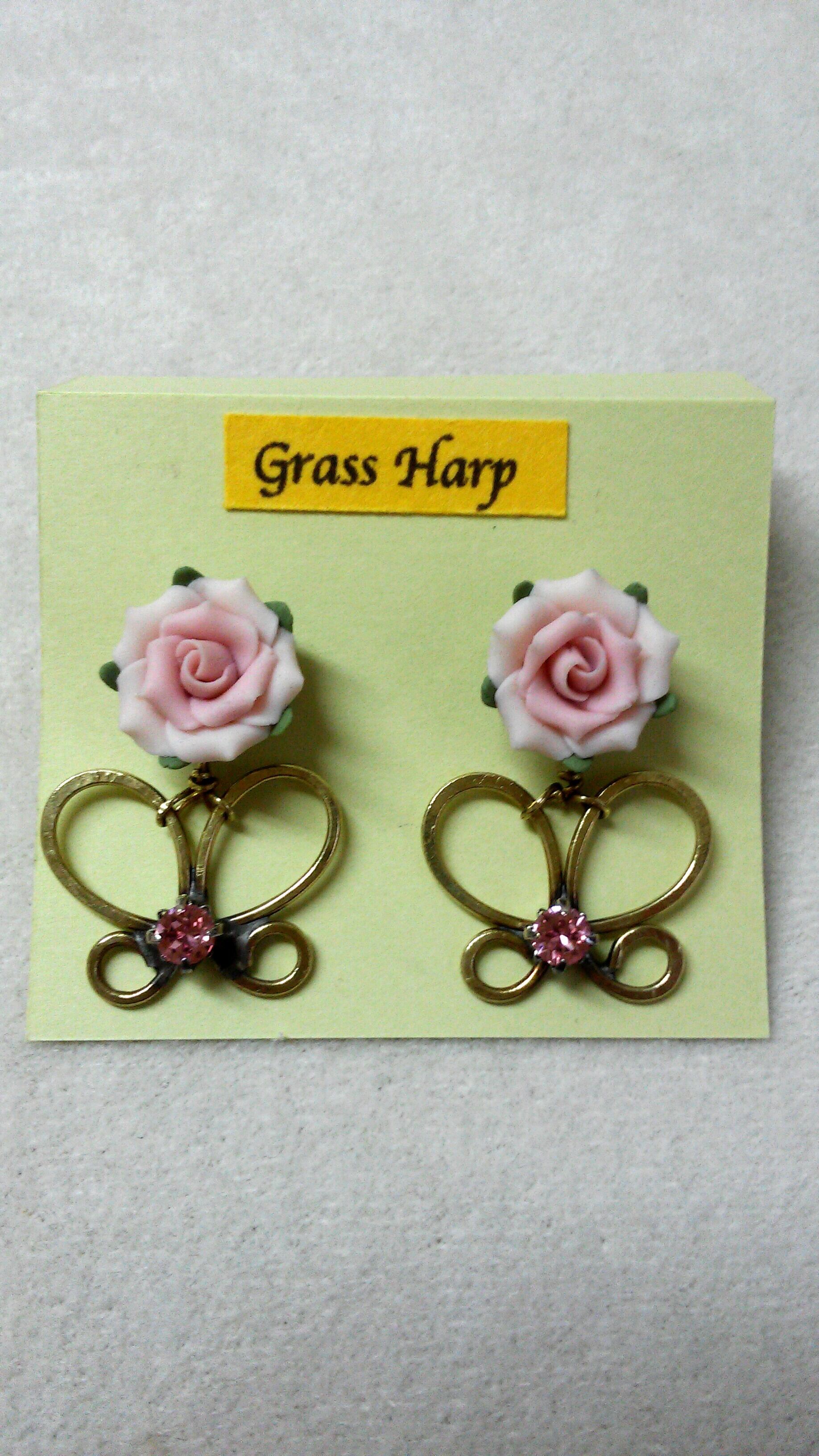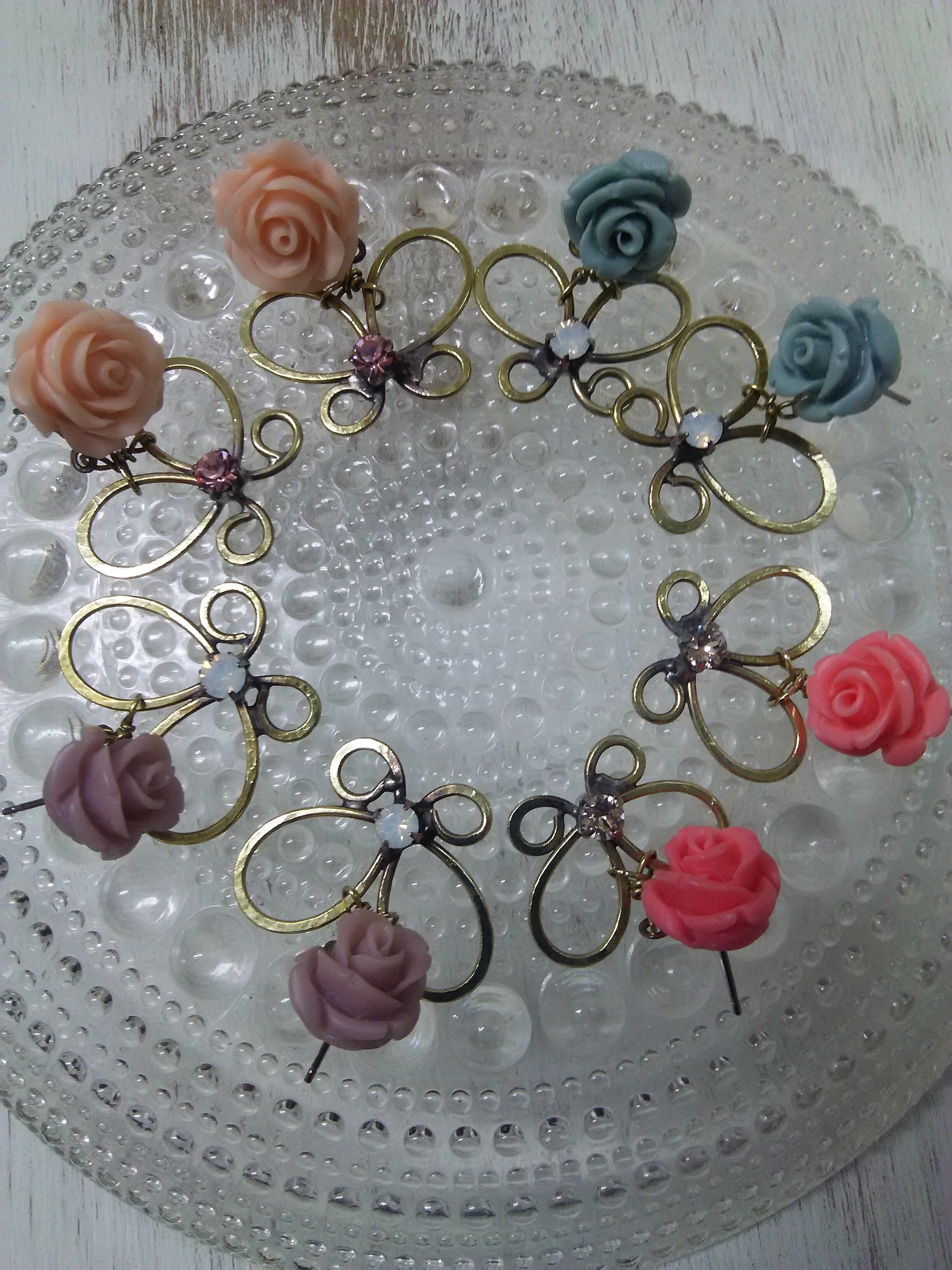 薔薇に蝶が寄ってきた姿を表現した甘くて可憐なピアスです。