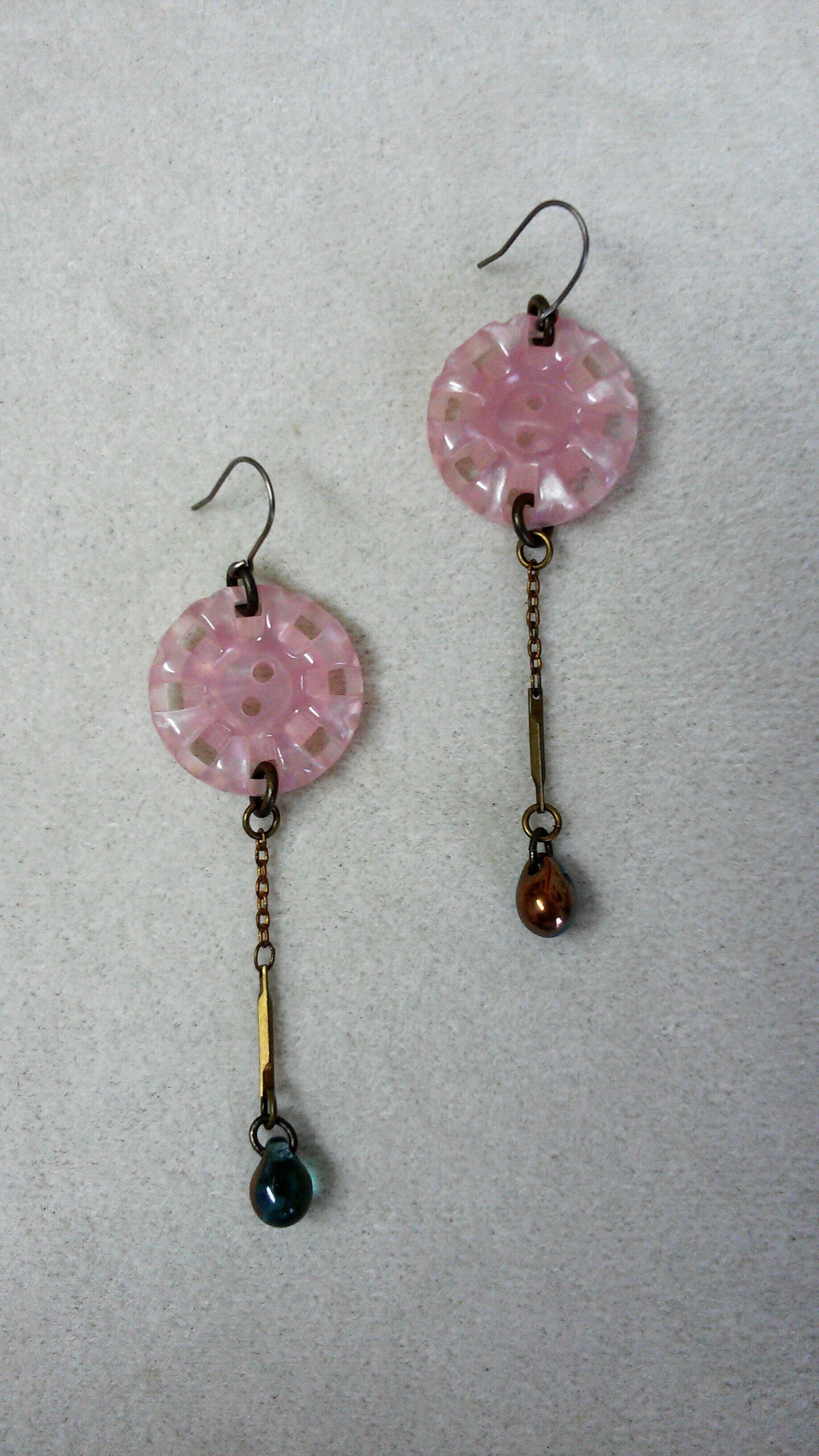ヴィンテージボタンに真鍮チェーン、フランスパーツを組みました。